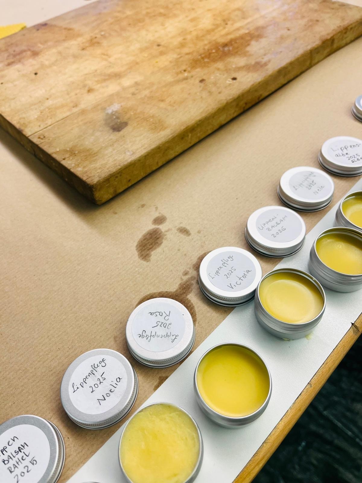 Die Kinder erfuhren zunächst Spannendes über das Leben der Bienen und die Gewinnung des Wachs. Anschliessend wurden sie selbst tätig: In kleinen Gruppen schmolzen sie reines Bienenwachs und mischten es mit Olivenöl, Harz und Lavendelöl. So entstanden Lippenbalsam und Heilsalben, die sorgfältig in kleine Döschen gefüllt und beschriftet wurden. Das wohlriechende, warme Wachs machte die Arbeit zu einer sinnlichen Erfahrung, die Kreativität, Konzentration und Feinmotorik zugleich fördert.