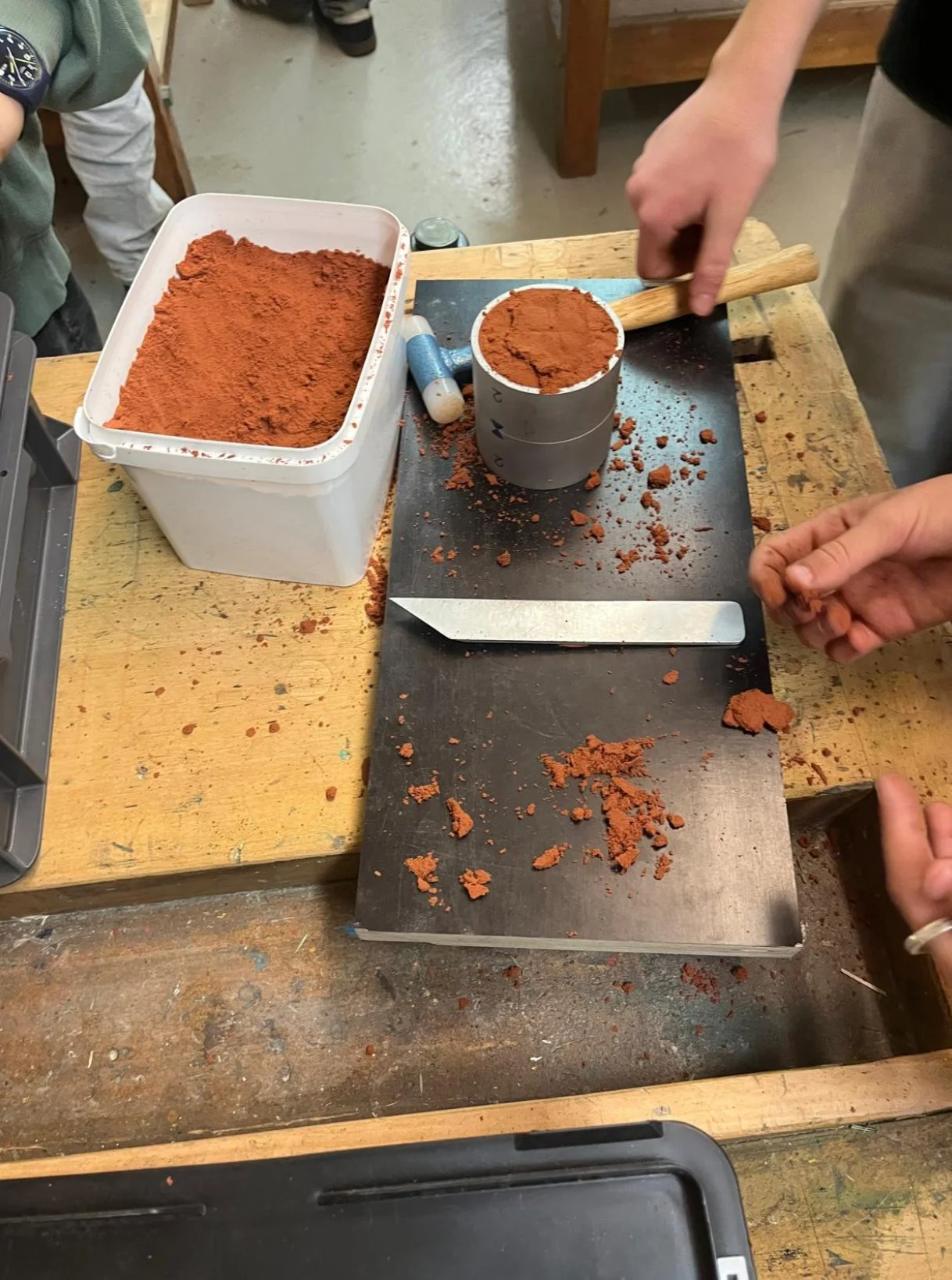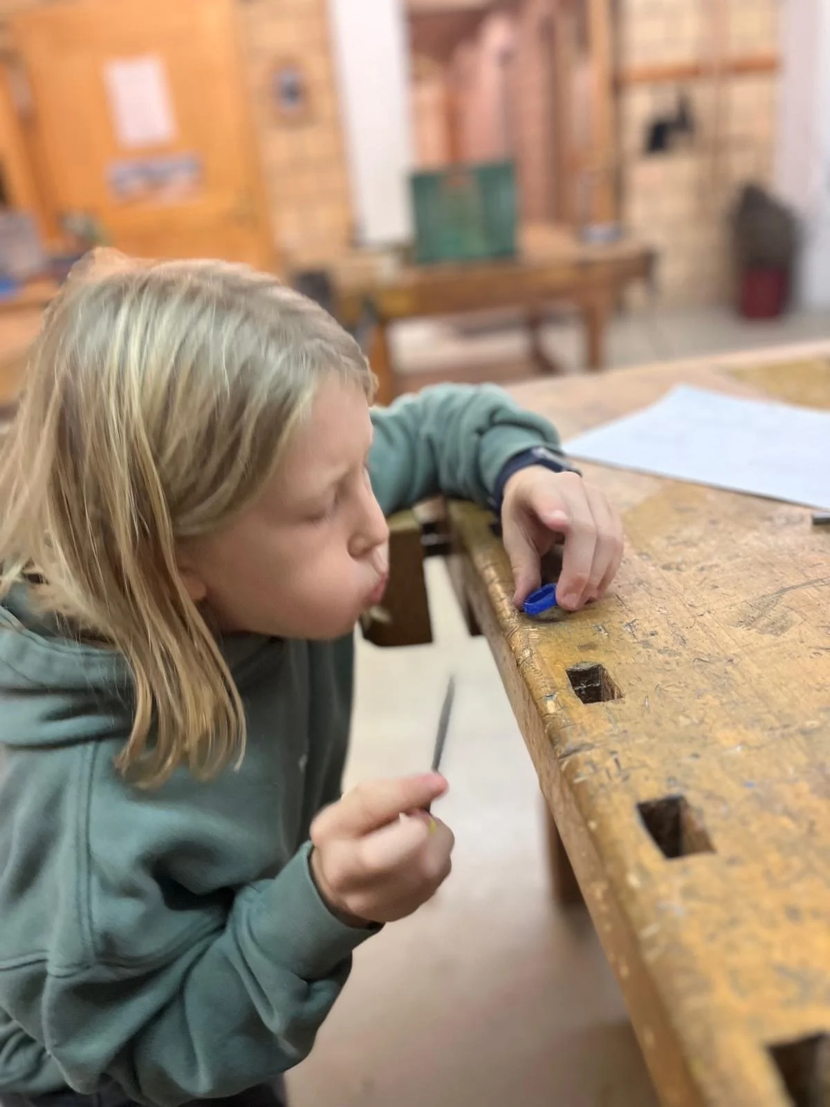 Parallel dazu beschäftigte sich die 7. Klasse mit Schmuckherstellung und Silbergießen. In den letzten Wochen entstanden wunderschöne Silberringe, die die Schülerinnen und Schüler selbst gossen, bearbeiteten und aus dem Guss lösten. Dieser handwerkliche Prozess verbindet Geduld, Präzision und Gestaltungskraft und eröffnet den Kindern die Freude am sichtbaren, greifbaren Ergebnis ihrer Arbeit.