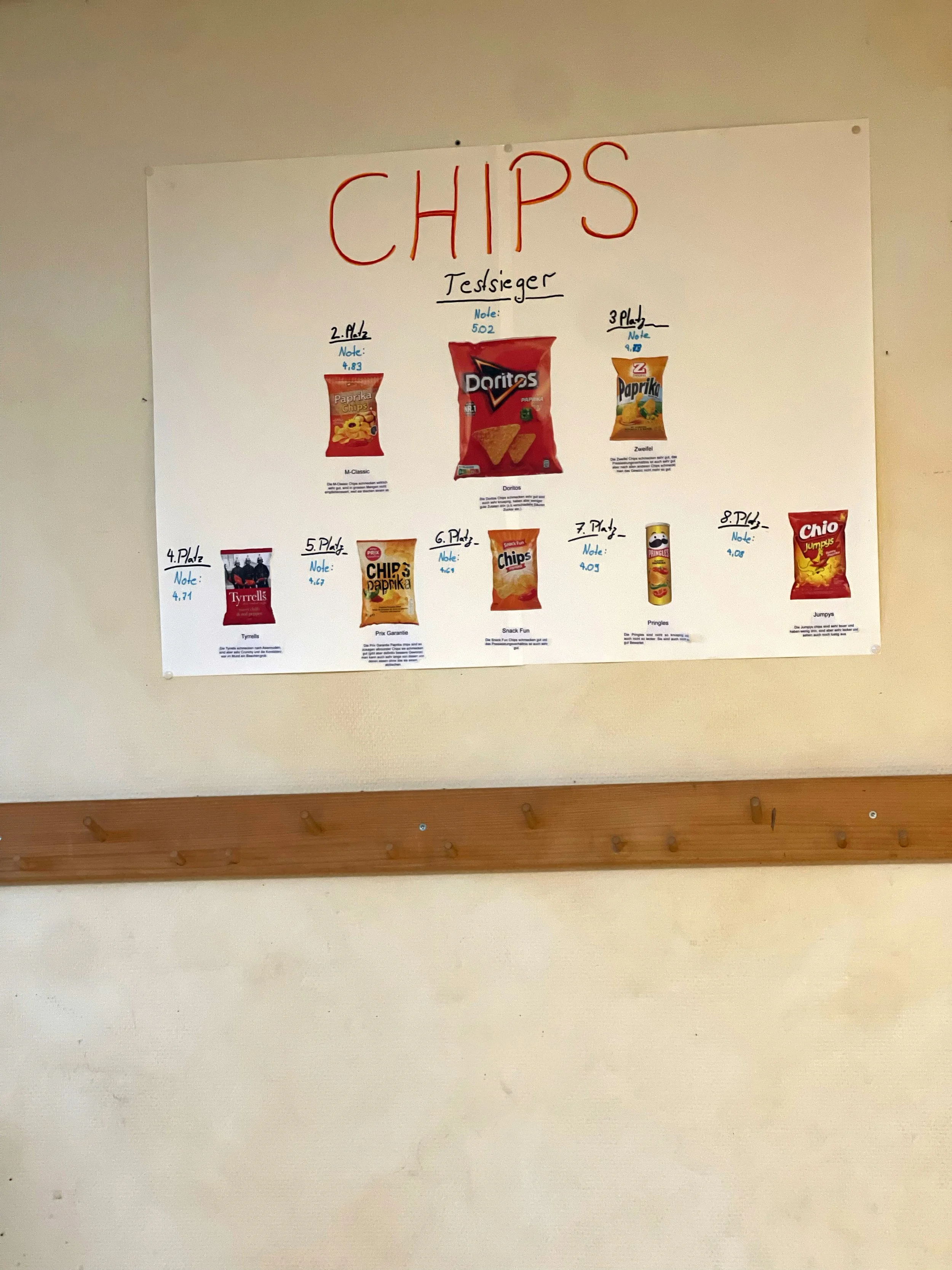 Auch bei den Chipssorten gab es deutliche Unterschiede. Billigere Chips enthielten oft Geschmacksverstärker und künstliche Aromen, um den Geschmack zu intensivieren. Teurere oder biologisch hergestellte Chips bestanden meist aus weniger Zutaten wie Kartoffeln, Öl und Salz. Geschmacklich wurden einfache Zutaten von vielen Schülerinnen und Schülern als natürlicher und angenehmer wahrgenommen.