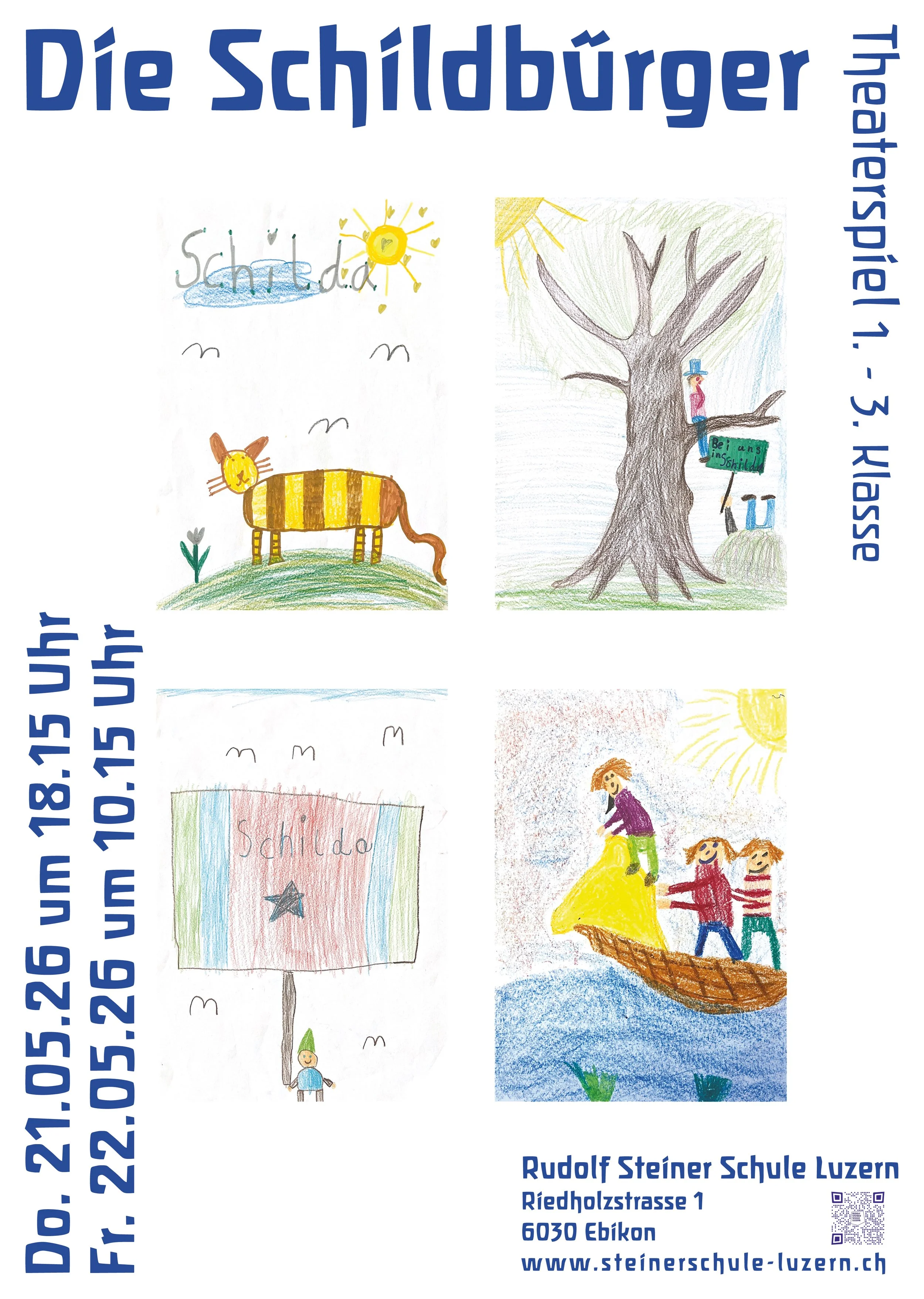 DIE SCHILDBÜRGER, THEATERSTÜCK DER 1. BIS 3. KLASSE Die Schildbürger – lustige Geschichten voller Chaos und verrückter Ideen aus der fiktiven Stadt Schildburg! Die Schülerinnen und Schüler der 1. bis 3. Klasse präsentieren ihr Theaterstück „Die Schildbürger“. Freut euch auf lustige Geschichten, verrückte Ideen und viel Theaterzauber! Aufführungen am Donnerstag, 21.05.26 um 18.15 Uhr , Freitag, 22.05.26 um 10.15 Uhr Ein tolles Erlebnis für die ganze Familie – nicht verpassen!